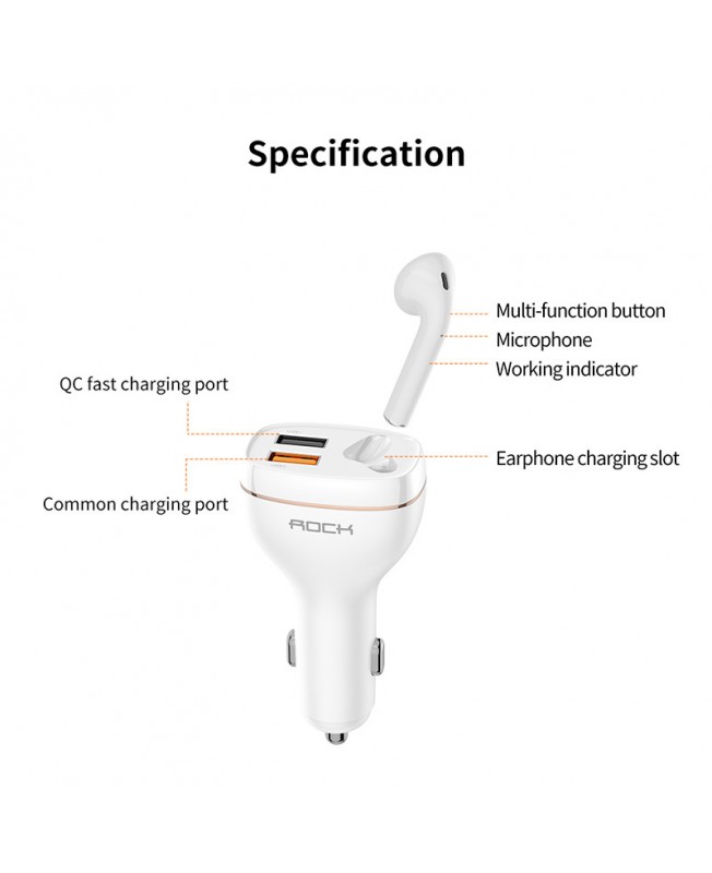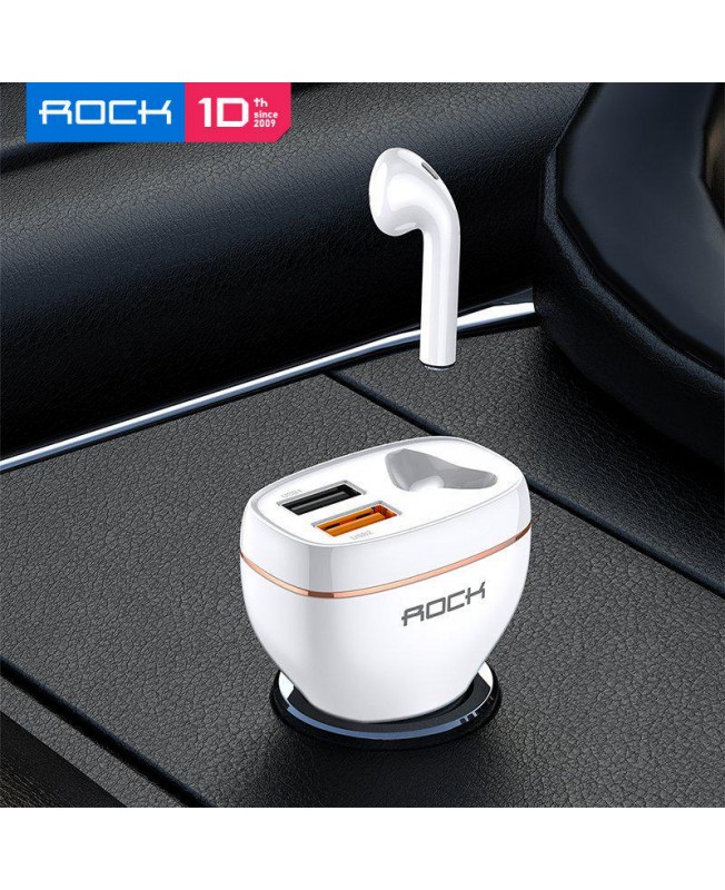 شارژر فندکی و ایرفون بلوتوثی راک مدل RAU0669 دارای دو درگاه USB-A با قابلیت فست شارژ و یک ایرفون تک گوش بلوتوثی میباشد.