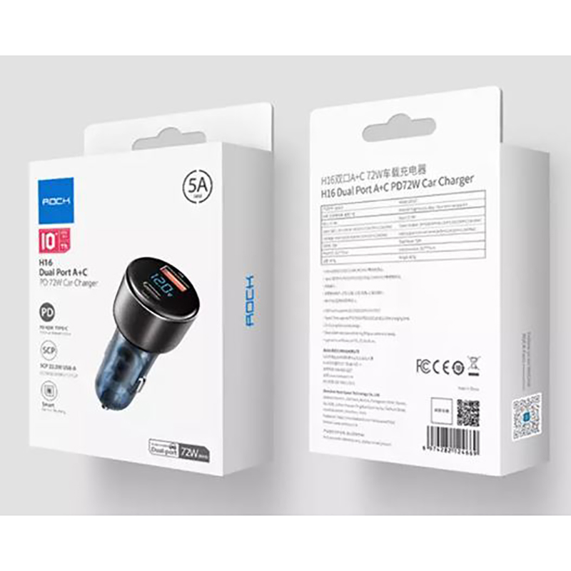 شارژر فندکی 72 وات راک| Rock Dual Car Charger H16 SD-017