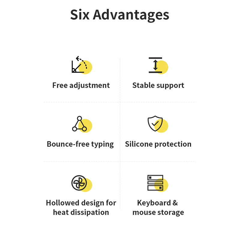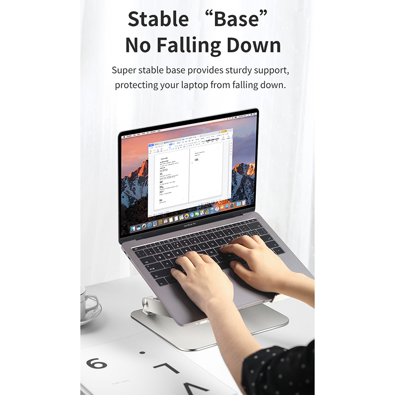 پایه نگهدارنده لپ تاپ Laptop Riser Stand RPH0972 از آلیاژ الومینیوم و silica gel ساخته شده است و به دلیل جنسی که دارد از لغزش لپ تاپ جلوگیری می کند و دستگاه شما به خوبی روی آن ثابت می ماند و دارای حفره هایی می باشد تا هوای فن لپ تاپ از آن خارج شود.