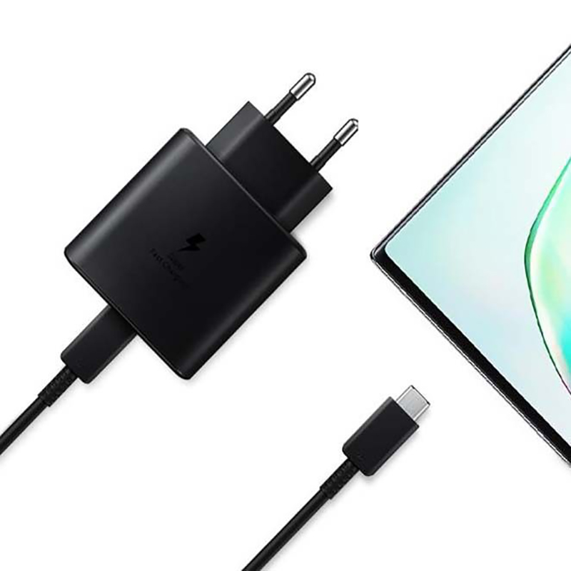 این شارژر که تولید شده توسط برند سامسونگ بوده دارای فناوری PD 3.0 است که با استفاده از آن می توانید دستگاه خود را با سرعت بیشتر و تا توان 45 وات نیز شارژ کنید. شدت جریان خروجی این آداپتور شارژ 3 آمپر می باشد که می توان از آن برای شارژ کردن تبلت هم استفاده کرد. برای این شارژر از چیپ هوشمندی استفاده شده تا با اتصال دستگاه به صورت خودکار جریان مناسب را برای دستگاه تامین کند، همین طور درگاه خروجی این محصول هم از نوع USB-C می باشد. البته در کنار این شارژر یک کابل تبدیل USB-C به USB-C به طول 1 متر که قابلیت انتقال جریان تا 5 آمپر را دارد هم ارائه میشود تا از آن استفاده کنید. لازم به ذکر است که این محصول فقط دستگاه هایی که با قابلیت Super Fast Charging 2.0 سازگاری دارند را با توان 45 وات شارژ می کند و محصولات دیگر را با سرعت های متفاوت و مناسبشان در صورت سازگاری با جریان و ولتاژ انتقالی این آداپتور، شارژ می کند به گونه ای که بنا به گفته سامسونگ با توان 15 وات نیز به شارژ دستگاه ها می پردازد.