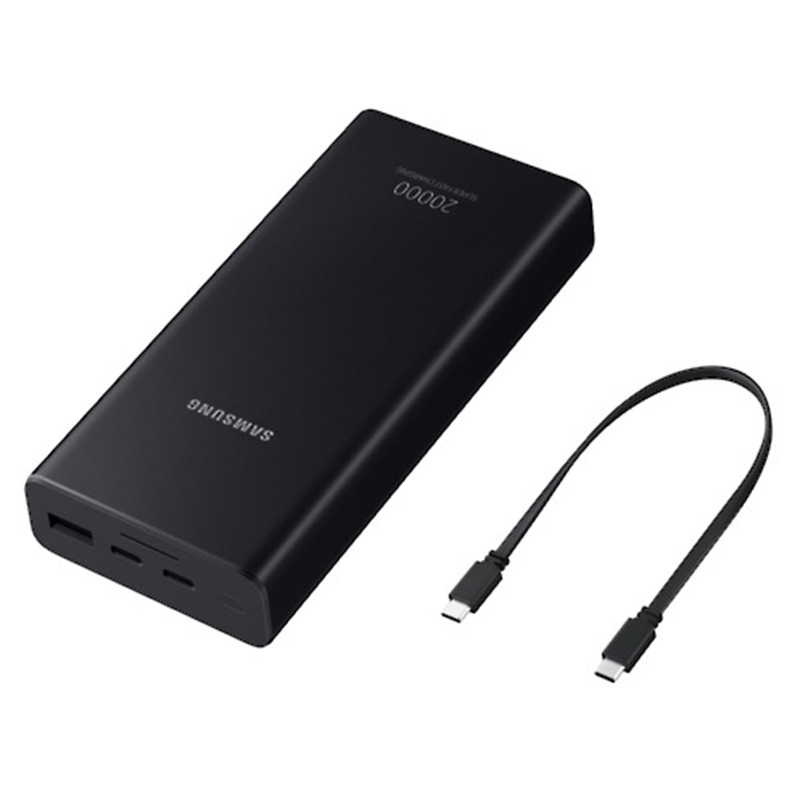 پاوربانک سامسونگ با ظرفیت 20000 میلی آمپر ساعت دارای قابلیت PD بوده و می تواند به طور همزمان 3 دستگاه را شارژ کند، همچنین در جعبه این محصول یک کابل تبدیل دو سر Type-c جهت شارژ خود شارژر همراه و سایر دستگاها قرار داده شده است.