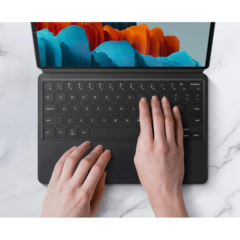 داشتن کیف تبلت کلاسوری که از تبلت به خوبی محافظت کند مهم می باشد اما علاوه بر محافظت دارا بودن قابلیت استند نیز بسیار اهمیت دارد زیرا در این حالت می توان به راحتی تبلت را در جایی ثابت گذاشت و به کارهایی مثل تماشای فیلم پرداخت که شاید بدون استفاده از استند دشوار می بود، اما ویژگی دیگری که کیف book cover دارد این می باشد که حاوی یک کیبورد است که می توان به واسطه آن از تبلت همانند لپتاپ استفاده کرد و بسیاری از کار ها را با راحتی بیشتری به وسیله این کیبورد انجام داد و تجربه ای متفاوت و منحصر به فرد را داشت. کیف کیبورد دار ef-dt870 مناسب برای تبلت های Galaxy Tab S8 و Galaxy Tab S7 است و ساخته شده توسط برند سامسونگ بوده که نیاز به داشتن کیف تبلتی که علاوه بر مقاوم بودن، همان طور که اشاره کردیم کارآمد هم باشد و بتوان با استفاده از کیبورد مخصوص آن با تبلت کار کرد را برطرف کرده است لازم به ذکر است که این کیبورد تاچ پدی با اندازه مناسب دارد که نقش ماوس در کیبورد های لپتاپ را دارد و با استفاده از آن می توان با لمس حداقلی صفحه نمایش، از تبلت استفاده کرد. این کیف تبلت که ظاهر زیبایی داشته این امکان را به شما می دهدکه با استفاده از استند آن بدون نیاز به نگه داشتن تبلت با دست از آن استفاده کنید. همچنین این کیف جایی مخصوص برای نگهداری قلم تبلت داشته که اگر جداگانه قلم لمسی مناسب تبلت خود را تهیه کنید می توانید آن را در این مکان قرار دهید.