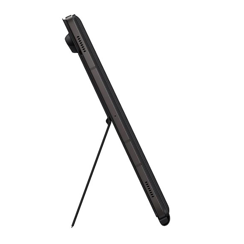 داشتن کیف تبلت کلاسوری که از تبلت به خوبی محافظت کند مهم می باشد اما علاوه بر محافظت دارا بودن قابلیت استند نیز بسیار اهمیت دارد زیرا در این حالت می توان به راحتی تبلت را در جایی ثابت گذاشت و به کارهایی مثل تماشای فیلم پرداخت که شاید بدون استفاده از استند دشوار می بود، اما ویژگی دیگری که کیف book cover EF-DT970 دارد , و آن را متمایز کرده این می باشد که حاوی یک کیبورد است که می توان به واسطه آن از تبلت همانند لپتاپ استفاده کرد و بسیاری از کار ها را با راحتی بیشتری به وسیله این کیبورد انجام داد و تجربه ای متفاوت و منحصر به فرد را داشت. کیف کیبورد دار book cover keyboard EF-DT970 مناسب برای تبلت های +Samsung Galaxy Tab S8 و +Samsung Galaxy Tab S7 است و ساخته شده توسط برند سامسونگ بوده که نیاز به داشتن کیف تبلتی که علاوه بر مقاوم بودن، همان طور که اشاره کردیم کارآمد هم باشد و بتوان با استفاده از کیبورد مخصوص آن با تبلت کار کرد را برطرف کرده است. لازم به ذکر است که این کیبورد تاچ پدی با اندازه ای مناسب دارد که نقش ماوس در کیبورد های لپتاپ را دارد و با استفاده از آن می توان با لمس حداقلی صفحه نمایش، از تبلت استفاده کرد. این کیف تبلت که ظاهر زیبایی داشته این امکان را به شما می دهدکه با استفاده از استند آن بدون نیاز به نگه داشتن تبلت با دست از آن استفاده کنید. همچنین این کیف جایی مخصوص برای نگهداری قلم تبلت داشته که اگر جداگانه قلم لمسی مناسب تبلت خود را تهیه کنید می توانید آن را در این محل قرار دهید.