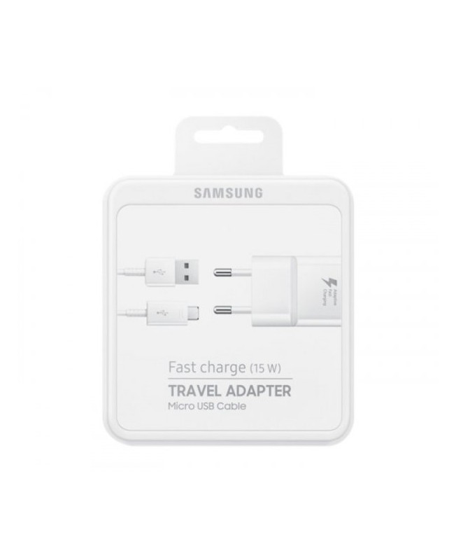 این شارژر دیواری تولید شده توسط کمپانی سامسونگ می باشد و همراه آن کابل microUSB قرار دارد.