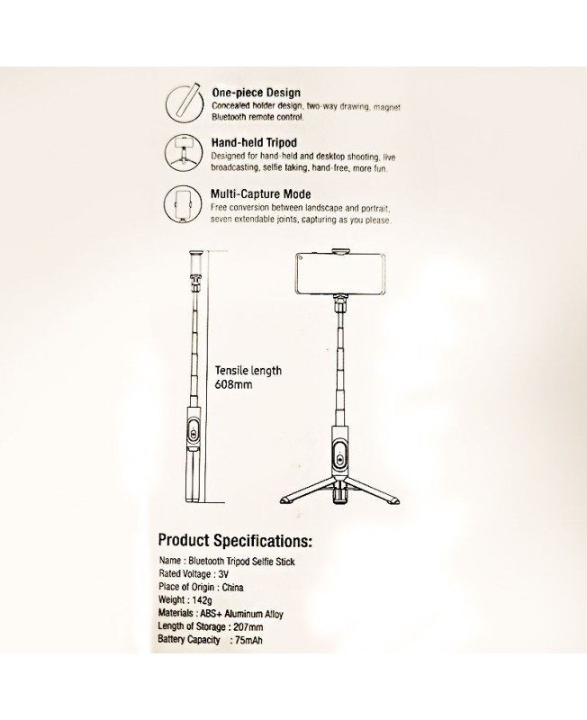 سه پایه و مونوپاد بلوتوثی سامسونگ مدل ITFIT Selfie P007 که جنس آن از پلاستیک ABS و آلومینیوم است و بیشینه ارتفاع آن 60 سانتی متر میباشد.