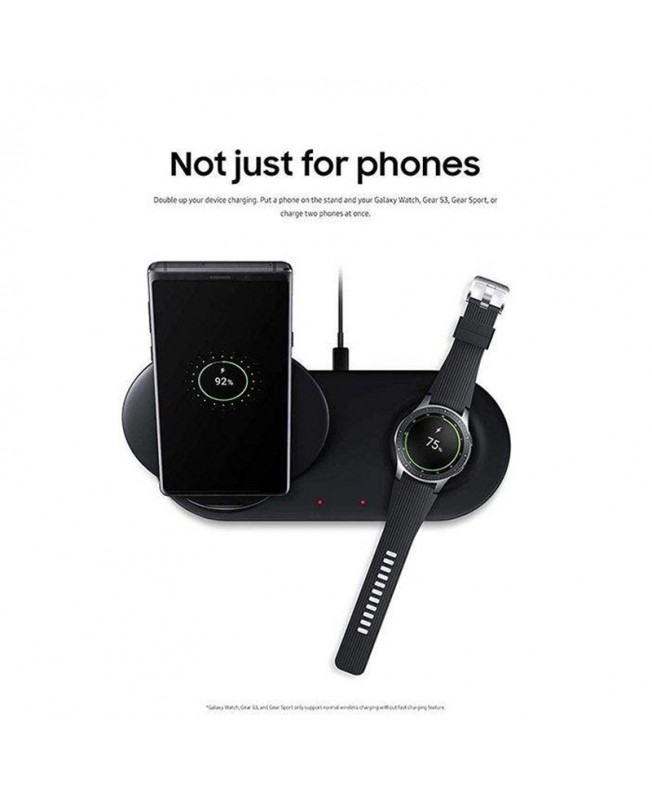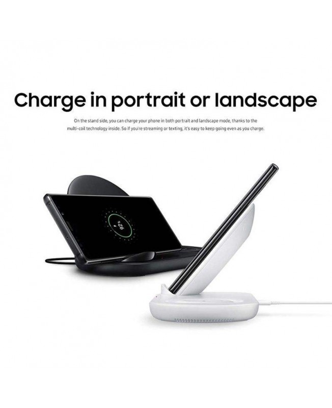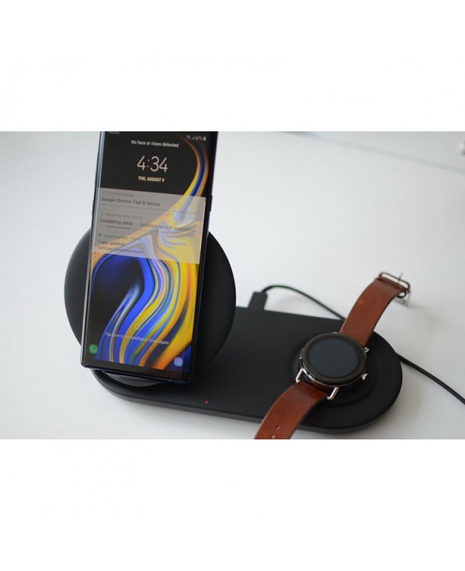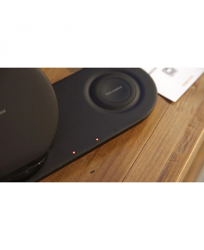 شارژر بی سیم برند سامسونگ که دارای دو پد وایرلس شارژ است و می تواند گوشی هایی را که از این نوع شارژ پشتیبانی می کنند را شارژ کند و با طراحی منحصر به فرد خود این امکان را برای شما فراهم می کند تا گوشی ها را هم به صورت افقی و هم به صورت عمودی بر روی آن قرار دهید.