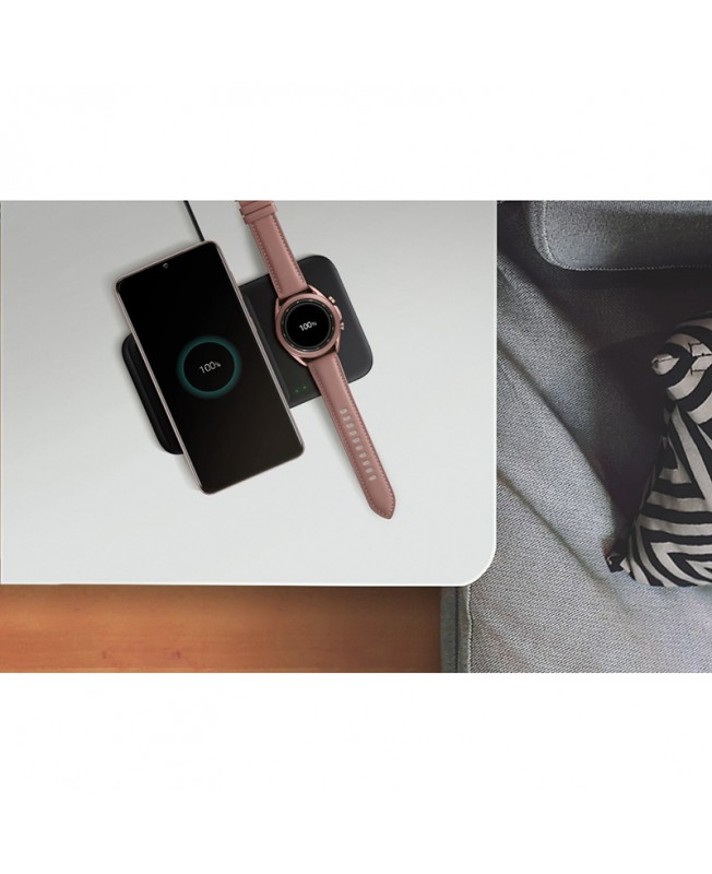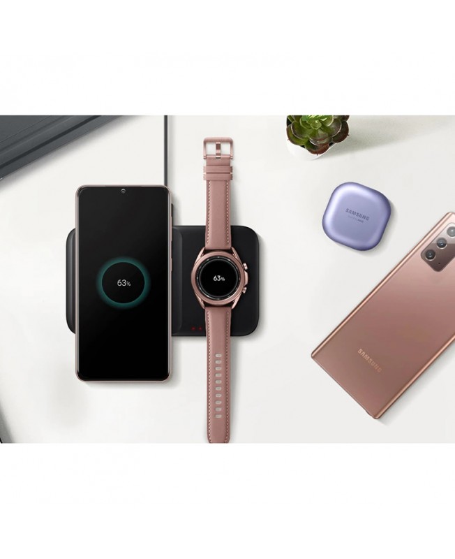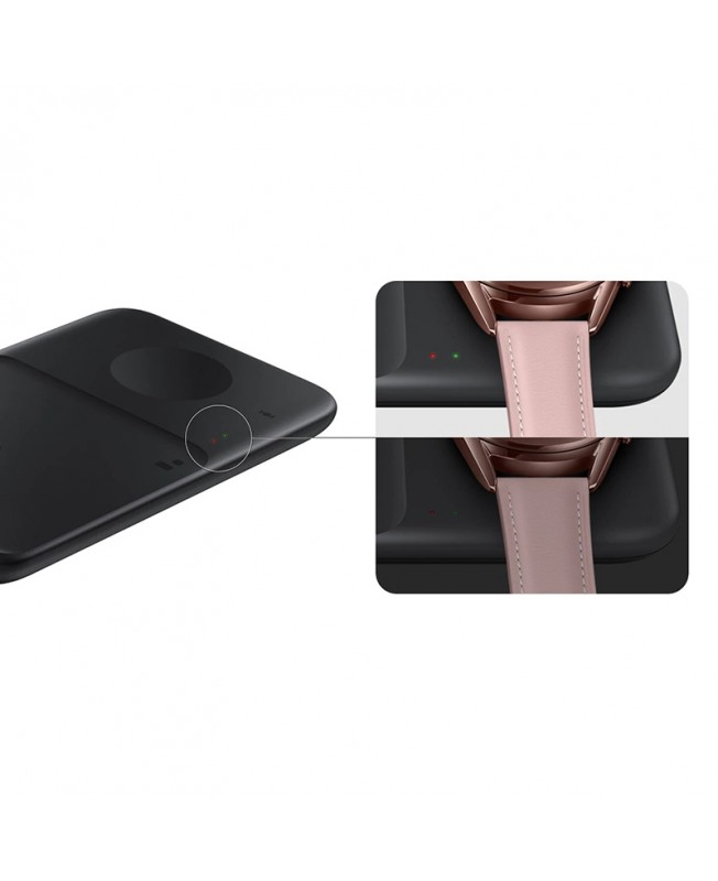 شارژر وایرلس EP-P4300 Wireless Charger Duo محصولی از کمپانی Samsung بوده که یک قابلیت بخصوص داشته و آن هم شارژ گوشی و ایرپاد به طور همزمان می باشد و شما می توانید گلکسی واچ خود را به کمک قابلیت آهنربایی بر روی این پد وایرلس قرار دهید.