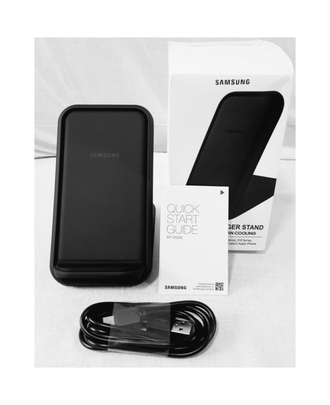 شارژر وایرلس سامسونگ مدل EP-N5200 با فن خنک کننده که از گرم شدن آن جلو گیری میکند ، دارای 15 وات توان خروجی میباشد.