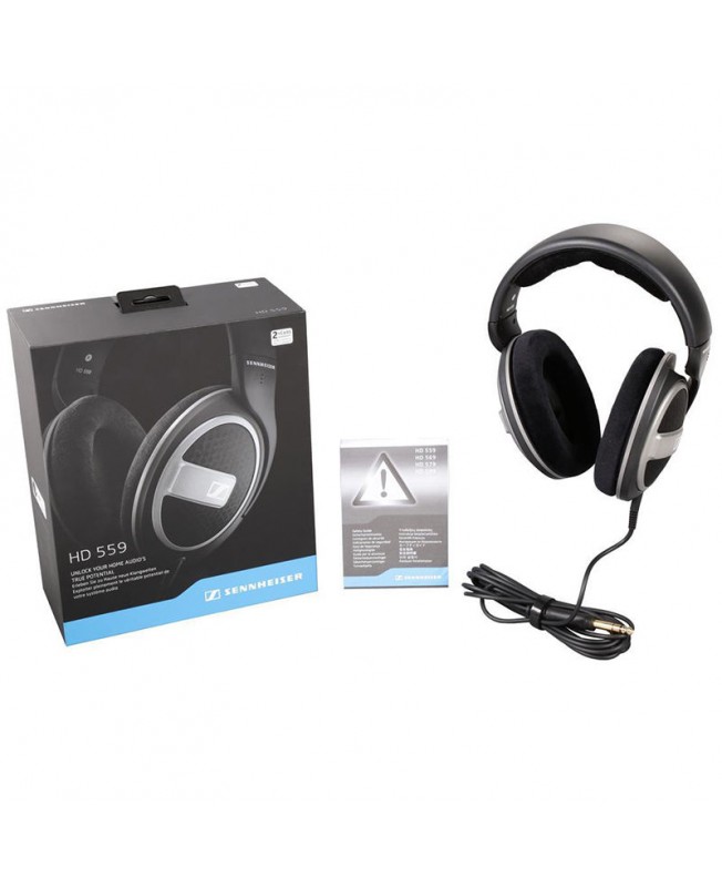 هدفون سیمی HD 559 محصول برند سنهایزر است که بصورت سیمی و از طریق جک 6.3 میلی متری صدا می توانید آن را به دستگاه های مختلف متصل نمایید. جک 6.3 میلی متری روی بعضی از موزیک پلیر ها و بعضی از سیستم های صوتی وجود دارد، اما اگر بخواهید Sennheiser HD 559 را به گوشی خود از طریق جک 3.5 میلی متری متصل نمایید، تنها کافیست که مبدل جک آن را جداگانه تهیه کنید و به هدفون متصل کنید. پد های فوق العاده نرم و پارچه ای دور گوش هدفون HD 559 باعث می شود تا در دراز مدت مشکلی ایجاد نکند و گوش شما را خسته نکند. کیفیت ساخت Sennheiser HD 559 نیز بسیار بالا بوده و جنس آن از پلاستیک سخت می باشد. نوع این هدفون Over Ear است و به معنای این بوده که تمام گوش شما را پوشش می دهد تا صدای اضافی از محیط اطراف نشنوید و گوشتان راحت و آزاد باشد. پاسخ فرکانسی که از این محصول می شنوید از 14 تا 26000 هرتز خواهد بود. امپدانس یا مقاومت داخلی هدفون نیز 50 اهم است و لازم به ذکر است که محتویات داخل جعبه این محصول نیز علاوه بر هدفون ، کابل رابط 6.3 میلی متری و راهنمای استفاده از آن می باشد.