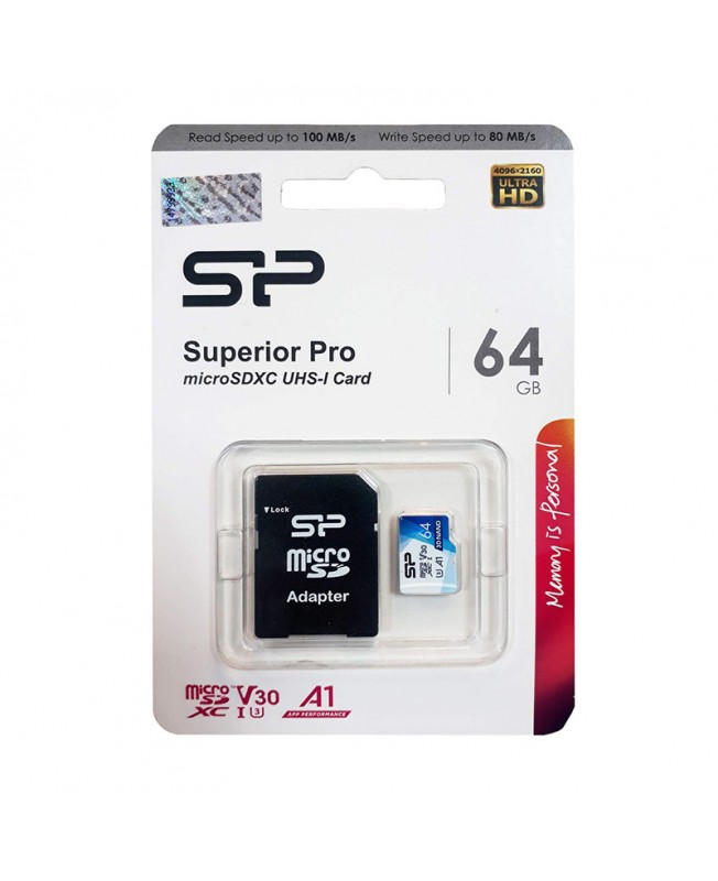 کارت اس دی Superior PRO برند سسلیکون پاور با ظرفیت 64 گیگابایت دارای ابعاد 1*11*15 میلی متر می باشد که این امکان را برای شا فراهم می کند تا این microSD Card را به راحتی حمل کنید و برای ذخیرهسازی عکس ها و اطلاعات و استفاده شخصیتان آن را به دوربین های دیجیتال یا ورزشی، پخش کننده موسیقی، لپ تاپ، هدفون، مودم، اسپیکر پرتابل، ساعت هوشمند و یا هر دستگاه دیجیتال که از این درگاه پشتیبانی کند متصل نمایید. همچنین شما در انتخاب این محصول باید به این نکته توجه داشته باشید که آیا حجم انتخابی شما با دستگاهتان سازگار می باشد یا خیر ، که دستگاههای دیجیتال میتوانند ظرفیتهایی بین 2 گیگابایتی تا 2 ترابایتی microSD Card را پشتیبانی کنند. در آخر هم باید به این نکته اشاره کرد که این کارت حافظه اس دی دارای کلاس A1 و استاندارد UHS-I است و می تواند اطلاعات را با سرعت 100mbps انتقال دهد و در بسته بندی آن نیز یک مبدل SD وجود دارد.