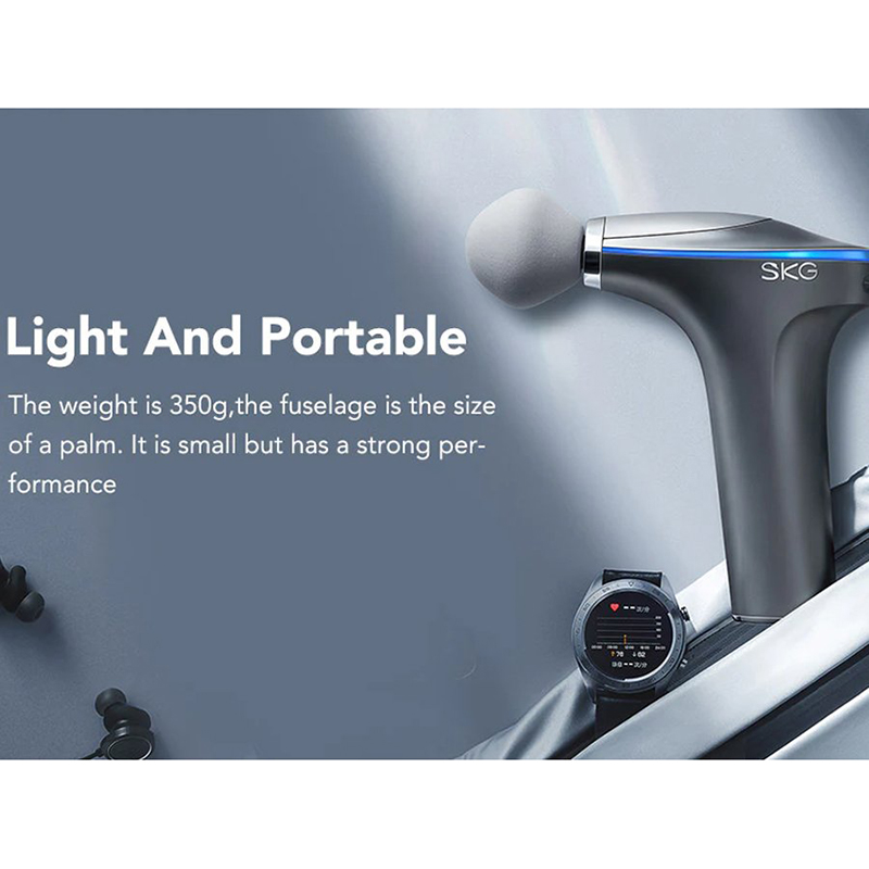 ماساژ پدیده ای است که باعث رهایی عضلات از گرفتگی و همین طور باعث ریلکس شدن و انتقال حس خوب به ما می شود، اما پیدا کردن ماساژوری مناسب که حمل و کار با آن ساده باشد و همین طور عملکردی رضایت بخش داشته باشد کار ساده ای نیست اما ماساژور تفنگی SKG Massage Gun F7-E با ویژگی های خاصی که به کاربر ارائه می دهد نظیر گرم شدن سری هوشمند آن می تواند در رفع خستگی به شدت موثر باشد. ماساژور پورتابل SKG با وجود ابعاد 183*60*200میلی متری و وزن 350 گرمی خود، خوش دست بوده و هنگام استفاده از آن احساس خستگی نخواهید کرد. باتری به کار رفته در این محصول نیز دارای ظرفیت 1800 میلی آمپر ساعتی است که با هر بار شارژ می تواند 6 الی 12 ساعت طمان استفاده را برای شما فراهم کند.