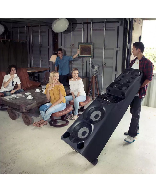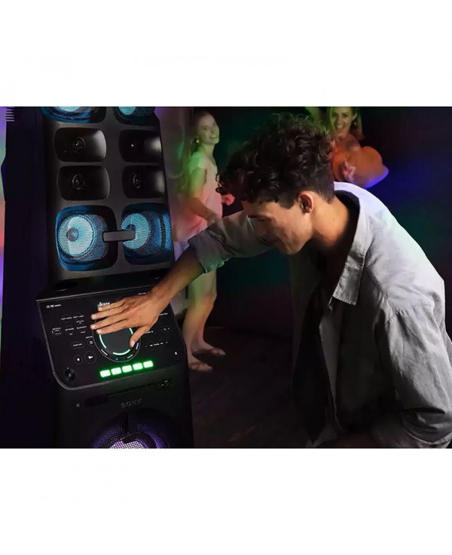 سیستم صوتی سونی V90 با توان فوقالعاده و کارایی پیشرفته، که مدلی عالی برای شما خواهد بود. در حال حاضر این مدل از قدرتمندترین مدلهای موجود است که صدا را با توان بالا پخش می کند. این سیستم صوتی با وجود امکانات و توان صوتی بالا امکان استفاده از مهمانیهای بزرگ شما را دارد و علاوه بر ارائه صدا با توان بالا، نور پردازی را نیز به شیوهای حرفهای انجام خواهد داد.