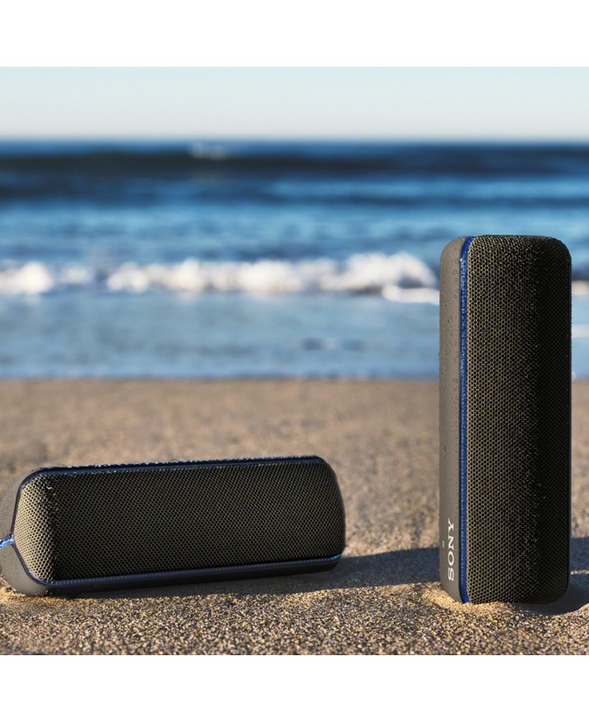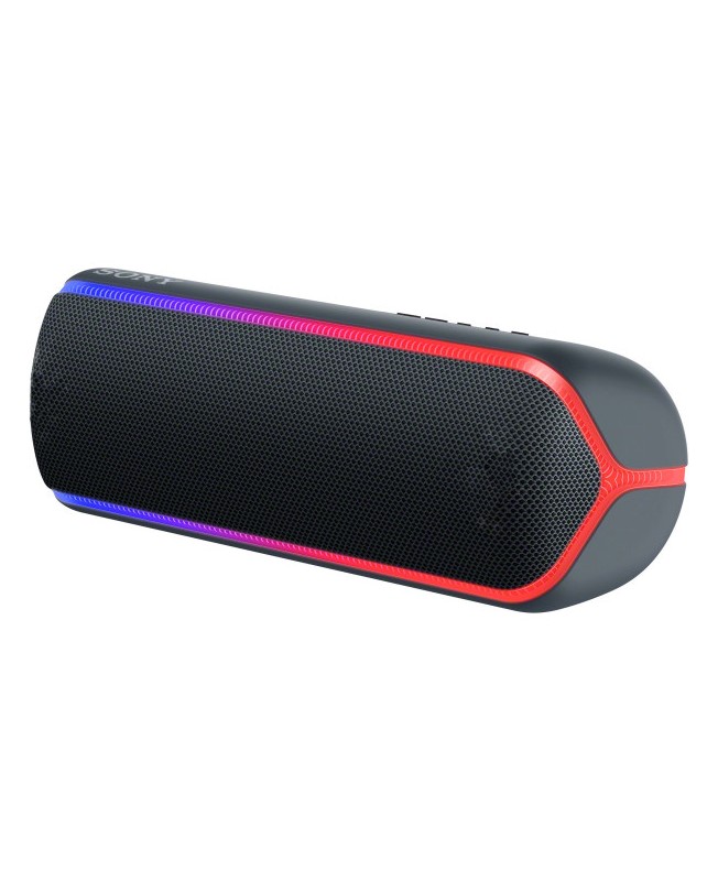 طراحی XB-32 به گونه ای است که در قسمت های زاویه دار آن ،صدا با فن آوری جدید DSP (پردازشگر صدای دیجیتال)پخش میشود و با کمک این تکنولوژِی موسیقی به فضاهای بیشتر و گسترده تری منتقل می شود و شما در هر مکان که هستید ، صدایی با عمق زیاد و واقعی را میشنوید. اسپیکر قابل حمل SRS-XB32 سونی با وزنی 540 گرم ،بسیار سبک و ظریف است که همین موضوع این امکان را برای شما به وجود میاورد تا XB22 را به راحتی با خود به هر کجا که مایل هستید حمل کنید. باتری این اسپیکر سونی حداکثر تا 12 ساعت به شما پلی تایم میدهد و به معنای آن است که SRS-XB32 می تواند گزینه خوبی برای برگزاری جشن های شما باشد. نکته جالبی که جا دارد به آن اشاره کرد قابلیت Party Booster که هنگام فعال سازی، می توانید به راحتی به جاهای مختلف اسپیکر ضربه بزنید تا صدا های جدیدی را بشنوید. و در آخر که با استفاده از قابلیت Party Chain می توانید تا حداکثر 100 عدد اسپیکر را به یکدیگر متصل کنید و به راحتی از موسیقی یکسان در فضاها و مکانهای مختلف لذت ببرید. البته در این امر نرم افزار اختصاصی Sony Music Center میتوانید شما را کمک کند و به راحتی کنترل اسپیکر را در دسترستان قرار دهد. اسپکر ضد آب XB32 دارای استاندارد IP67 است و تا حدودی در برار آب و گرد وخاک مقاوم است و شما میتوانید بلندگوی خود را با خیال راحت به ساحل، جنگل، کویر، و یا هر کجا که دوست دارید ببرید.