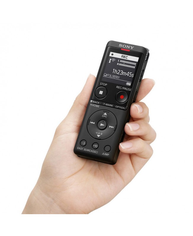 ضبط کننده صدای سونی ICD-UX570F با 4 گیگ حافظه داخلی و استفاده مداوم تا 20 ساعت قابلیت ضبط صدای استریو را دارد.