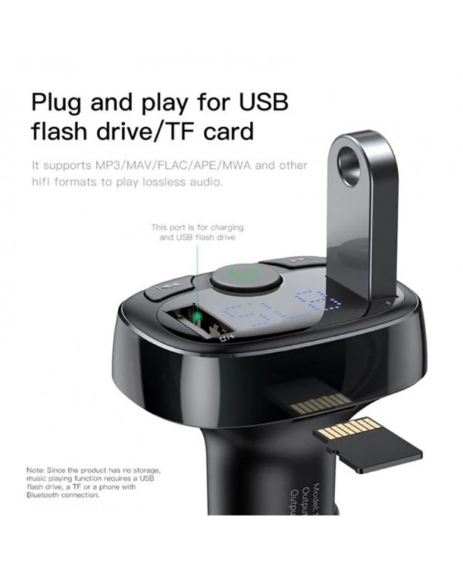 شارژر فندکی و پخش کننده موسیقی S-09A برند بیسوس با ابعاد 33*45*72 میلی متر و وزن 29 گرم با بدنه ای از جنس پلاستیک ABS که مقاومت بالایی در برابر ضربه ، فشار و حرارت دارد ساخته شده و این امکان را به کاربران می دهد تا علاوه بر پخش موسیقی و انجام مکالمه به راحتی بتوانید دو دستگاه خود را به طور همزمان با شدت جریان و ولتاژ 5V-3.4A شارژ نمایید. Baseus S-09A را می توانید با کمک درگاه کارت حافظه Micro SD ، پورت USB و فناوری بلوتوث به یک FM Player تبدیل کنید به این شکل که از درگاه های یو اس بی سمت راستی آن می توان هم برای شارژ و هم برای اتصال فلش استفاده کرد .همچنین بر روی شارژر فندکی CCALL-TM01 باسئوس یک صفحه نمایشگر برای نشان دادن موج رادیو و سه کلید فیزیکی برای کنترل موسیقی ، ولوم و مدیریت تماس ها وجود دارد.