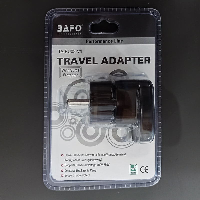 تبدیل و محافظ برق 3 به 2 بافو | Travel Adapter TA-EU03-V1