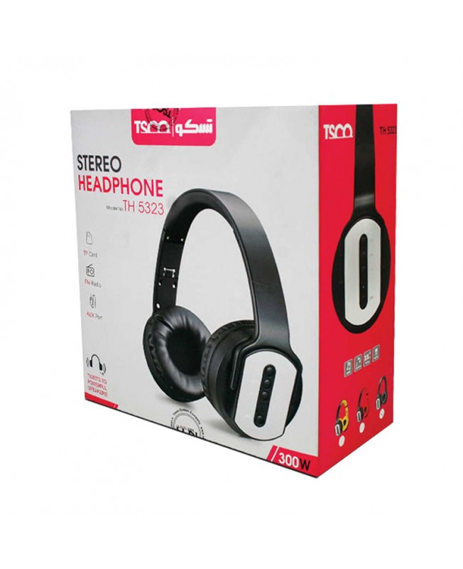 هدفون TH5323 برند تسکو دارای بدنه مقاوم در برابر ضربه و بالشتک هایی نرم می باشد تا از خستگی گوش شما جلوگیری کند و از طریق فناوری بلوتوث می تواند به گوشی و یا تبلت شما متصل شود و تا 10 متر را پشتیبانی می کند تا شما با خیال راحت بتوانید به پخش موسیقی خود بپرداید، همچنین این هدفون دارای یک پورت AUX و ورودی درگاه SD کارت است تا در صورت تمایل از طریق این دو راه به هدفون تسکو متصل شوید. هدفون بی سیم TH5323 دارای یک باتری 300 میلی آمپر ساعتی می باشد که با یکبار شارژ کامل در مدت زمان 3 ساعت پلی تایمی برابر با 10 ساعت برای پخش موسیقی و 15 ساعت برای مکالمه به ارمغان می آورد و به راحتی می توانید با وجود درایور های 40 میلی متری هدفون بلوتوثی تسکو به انجام مکالمه و شنیدن موسیقی با کیفیت و با صدای غنی بپردازید. در آخر نیز باید به این نکته اشاره کرد که بر روی این هدفون دکمه های فیزیکی برای کنترل موسیقی، ولوم و تغییر حالت پخش بکار رفته است و شما می توانید با کمک این دکمه ها به هدفون خود کنترل داشته باشد.