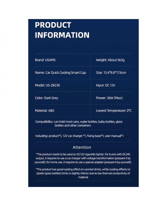 USAMS Car Quick Cooling Smart Cup US-ZB230