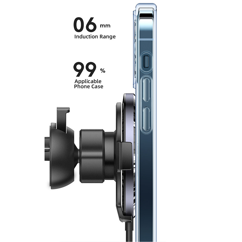 هولدر و شارژر بی سیم خودرو یوسامز مناسب برای آیفون های دارای MagSafe می باشد و می تواند با حداکثر توان 15 وات دستگاه های متصل به خود را شارژ نماید، البته ذکر و توجه به این نکته که این هولدر مختص آیفون های دارای مگ سیف نیست و از آن می توان بر روی تمام دیواس ها استفاده کرد نیز حائز اهمیت است.