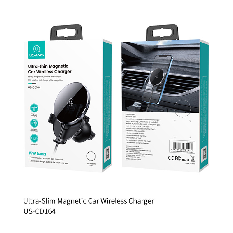 هولدر و شارژر وایرلس یوسامز | USAMS Ultra-Slim Magnetic Car Wireless Charger