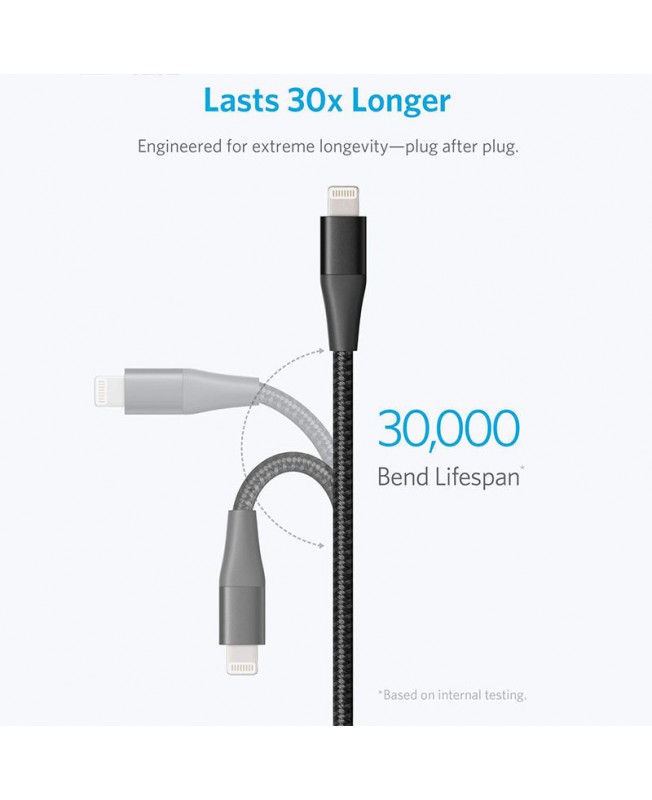 کابل تبدیل USB به لایتنینگ انکر با طول 0.9 متری که علاوه بر توانایی انقال داده و شارژ دارای مقاومت 30000 برابری در مقابل خمش می باشد و شما می توانید با خیال راخت از این محصول کمپانی انکر استفاده کنید.