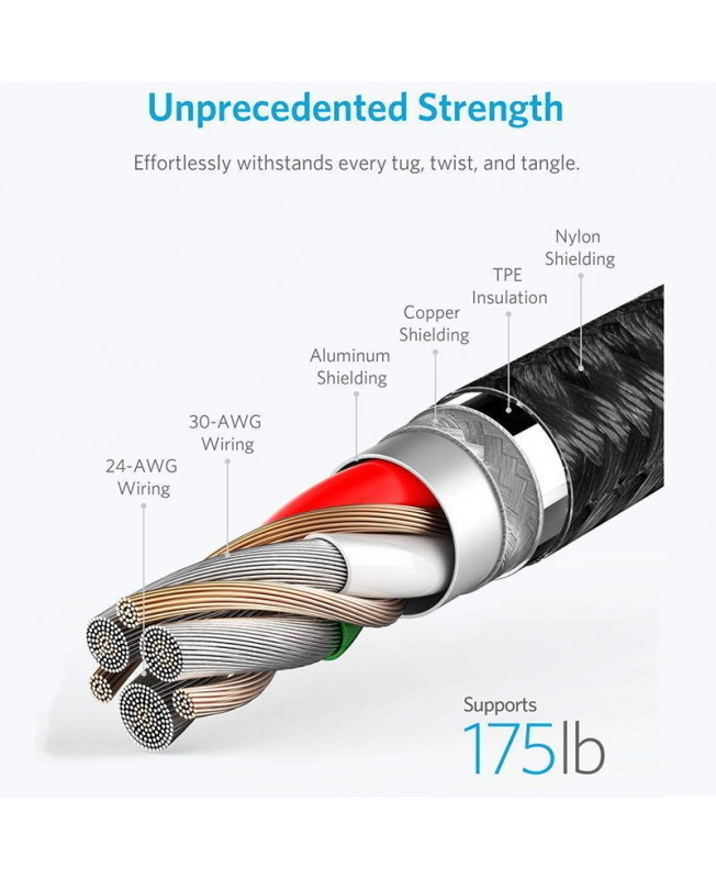 کابل تبدیل USB به لایتنینگ A8452 Powerline + II برند انکر که دارای طول 90 سانتیمتر است و به لطف دسته بندی های تخصصی شده رشته های داخلی ، هر رشته بر اساس وظیفه ای که دارد جنس متفاوت و عایق بندی متفاوتی دارد که منجر به حد اقل رسیدن مقاوت جریانی و افزایش حداکثری سرعت انتقال اطلاعات میشود. روکش این محصول از الیاف ضد گلوله کولار ساخته شده است که قدرت تحمل بیش از 30000 بار خمش را دارد. شرکت انکر برای حل مشکل گره خوردگی کابل های خود آنها را با قابلیت ضد تنیدگی تولید می کند. کابل تبدیل USB به لایتنینگ انکر 90 متری انکر مناسب برای انتقال شارژ و اطلاعات از دو درگاه USB و لایتنینگ بوده و با تمام سیستم عاملهای موجود در بازار کاملا سازگار است. و نکته حائز اهمیت دیگر این است که کمپانی انکر برای جلب اعتماد شما دارای مجوز کیفیت کالا MFi از کمپانی اپل می باشند و این بدان معناست که کابل تبدیل USB به لایتنینگ کمپانی انکر از دیدگاه کمپانی اپل برای استفاده روزمره کاملا ایمن و مطمئن است.
