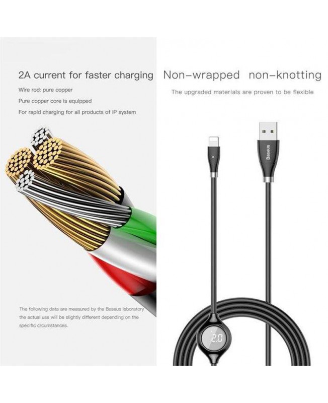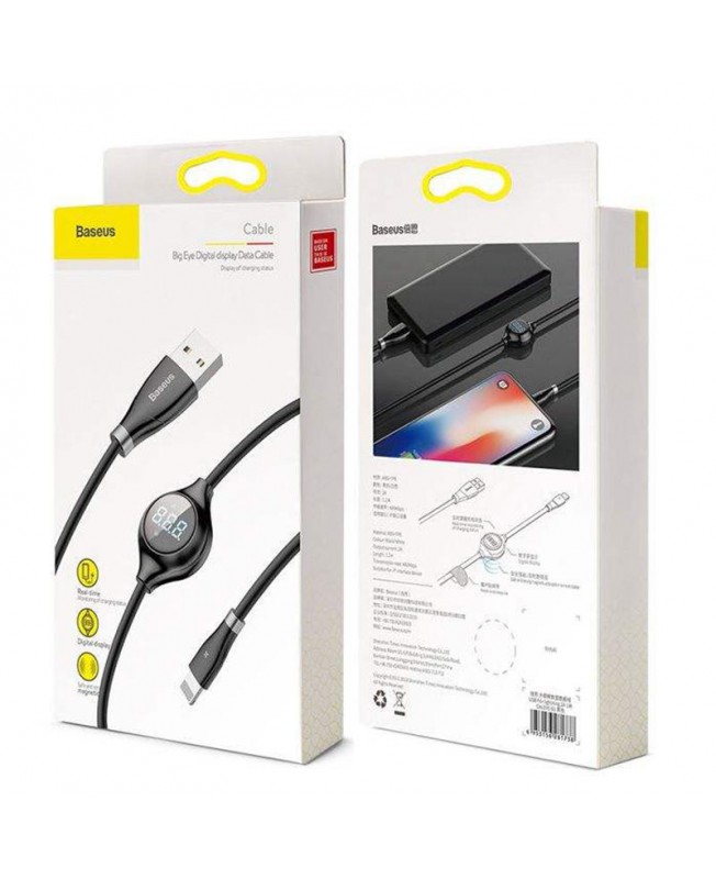 کابل تبدیل USB به لایتنینگ برند بیسوس با طول 120 سانتی متری امکان شارژ گوشی با شدت جریان و ولتاژ 5V-2A را داراست و با بدنه ای از جنس TPE طراحی و تولید شده است که آن را در برابر گره خوردگی، ضربه،کشیدگی و حتی پارگی تا حدود قابل قبولی مقاوم می کند،همچنین سوکت های این کابل به صورت فلزی طراحی شده اند که این امر باعث دو چندان شدن مقاومت Baseus Cable Big Eye می شود.علاوه بر استفاده برای شارژ دستگاهتان می توانی از این کابل برای اتقال اطلاعات با سرعت بالا نیز استفاده نمایید و با نمایشگر دیجیتال طراحی شده بر روی آن به بررسی میزان شدت جریان خروجی از کابل بپردازید.