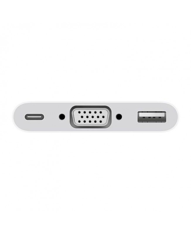 یک کابل کوچک اما کارآمد برای تبدیل درگاه USB-C به درگاه های USB-C، VGA و USB. بیشترین ضخامت برخی از لپتاپهای جدید، بهسختی به 13.1 میلیمتر میرسد. این موضوع فضای خیلی کمی را برای درگاههای ارتباطی ازجمله USB ها(که 7.5 میلیمتر هستند) باقی میگذارد. هر کانکتور دیگری نیز برای اتصال به مادربورد، علاوه بر فضایی برای خود کانکتور، نیاز به مقداری کلیرنس عمودی نیز دارند. ورود کانکتور ها و درگاههای ارتباطی USB-C، سازندگان کامپیوتر، لپتاپ و تبلت ها را برای تولید محصولاتی سبکتر و باریک تر کمک کرده است. شرکتهای بزرگی مثل اپل، دل، HP، اینتل، مایکروسافت و سامسونگ به استفاده از این کانکتور ها روی آوردهاند. این کابل که ساخت اپل است، امکان اتصال درگاه USB-C به کانکتور های VGA, USB و USB-C را فراهم می کند. از این طریق می توان هم فایل های ویدئویی را مشاهده کرد و هم همزمان از طریق درگاه USB-C اقدام به شارژ کرد. این مبدل های کوچک کار با مک بوک هایی که درگاه USB-C دارند را راحت تر کرده است.