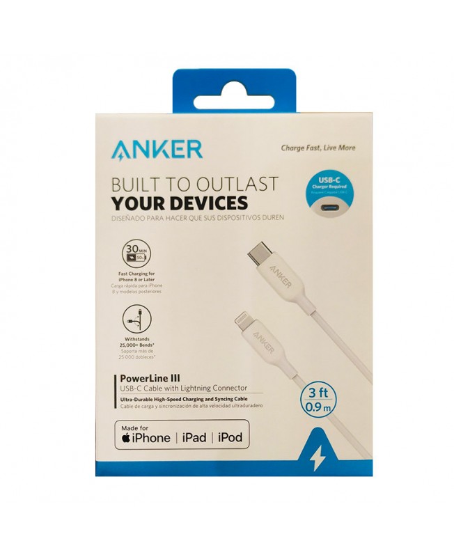 کابل تبدیل USB-C به لایتنینگ انکر 0.9 متری ANKER PowerLine III A8832