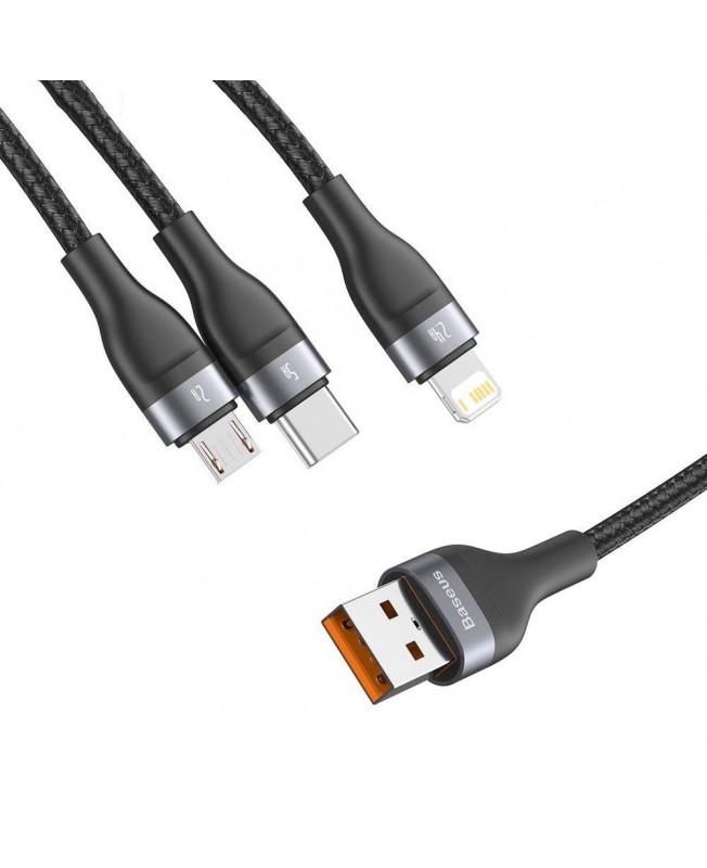 کابل تبدیل USB به لایتنینگ/microUSB/Type-c باسئوس 1.2 متری | Baseus One-for-three Fast Charging Data Cable