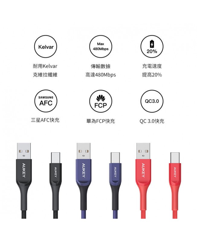 کابل تبدیل USB به USB-C آکی طول 1.2 متر | AUKEY CB-AKC1 Cable