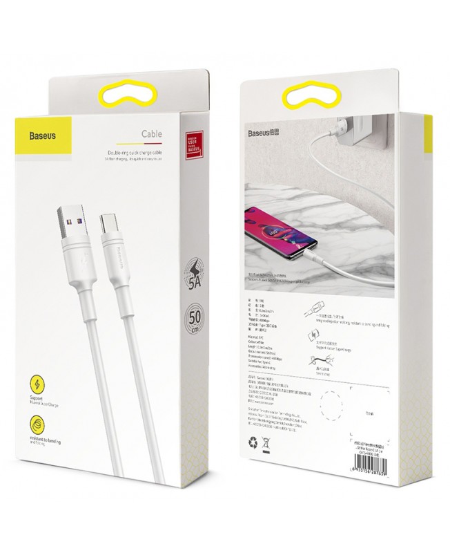 کابل USB به Type-C بیسوس به طول 0.5 متر است و دارای جریان 5 آمپر و ولتاژ 5ولت است. این کابل با ایجاد حداکثر توان شارژ خروجی روی گوشی های تایپ سی و مخصوصا هواوی، کارآیی شارژ را تا حد زیادی بهبود می بخشد. درون کابل نیز از هسته مسی ساخته شده است. این هسته مسی از6 کابل مسی تشکیل شده است که تا چند برابر سرعت شارژ را بهبود بخشیده است.