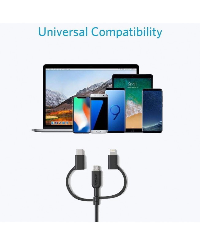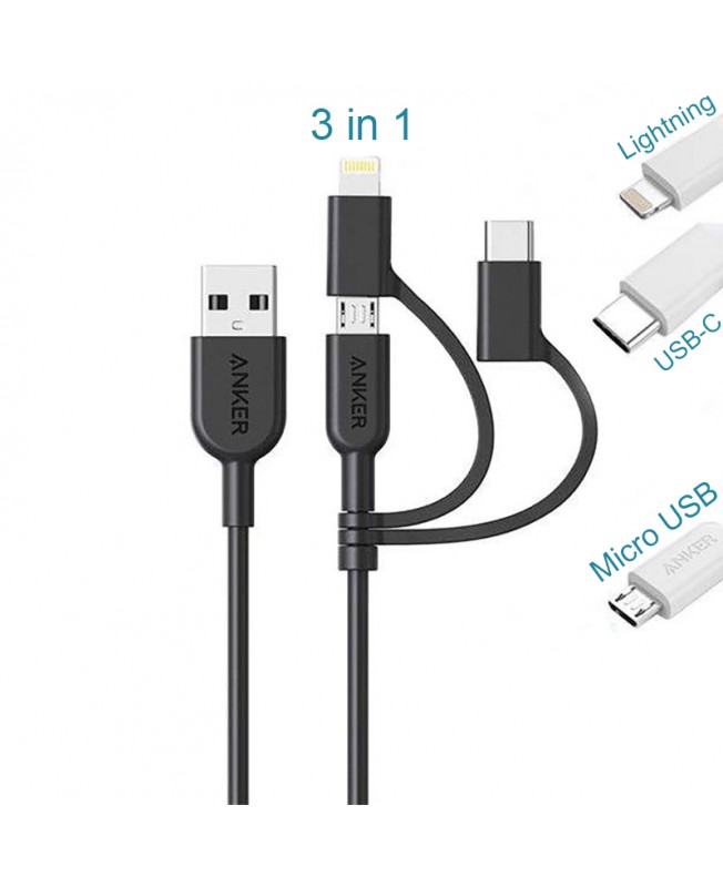 کابل تبدیل USB به لایتنینگ/USB-C/microUSB انکر با طول 0.9 متری دارای هر 3 کانکتور ضروری و کاربردی می باشد و شما میتوانید با استفاده از این کابل اکثر دستگاهای خود را به راحتی شارژ نمایید.