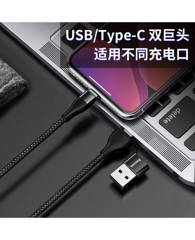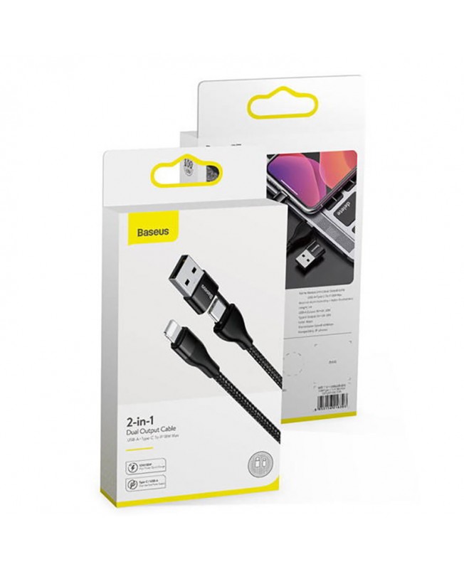 کابل تبدیل USB/Type-c به لایتنینگ باسئوس | Baseus 2 in 1 Dual Output Cable USB-A Type-C to iP