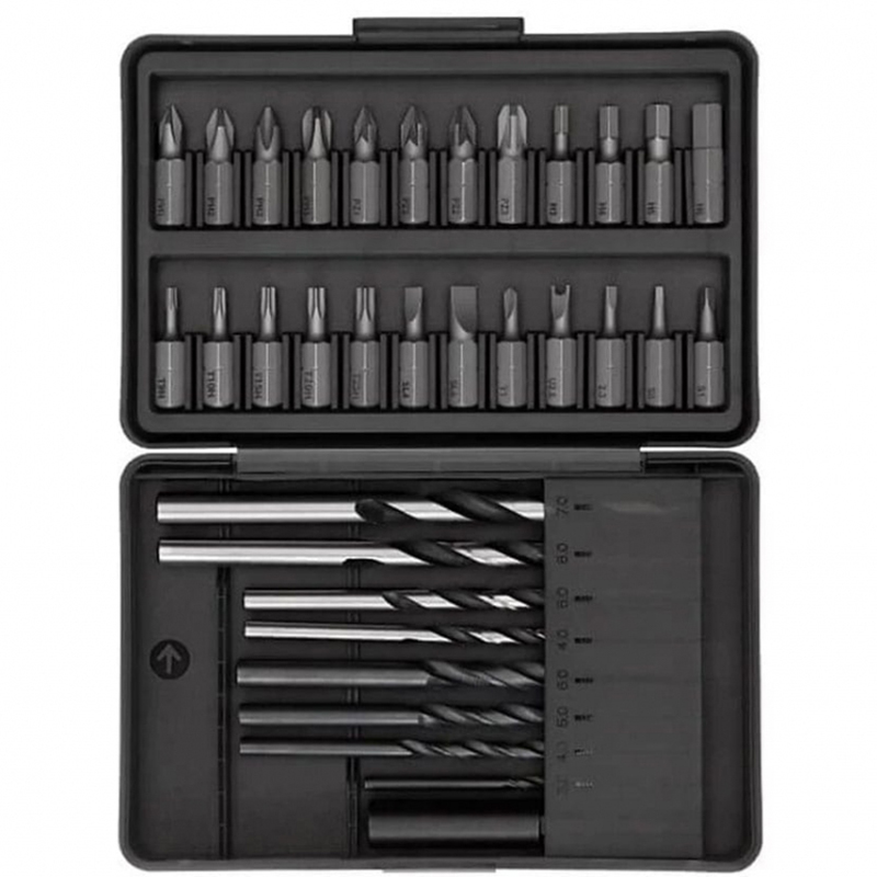 اقلام درون جعبهکیف مخصوص، شارژر، کابل شارژ، جعبه مخصوص سری ها، افزایش دهنده طول سری، 24 سری مختلف، 8 سری مخصوص دریل، دفترچه راهنما