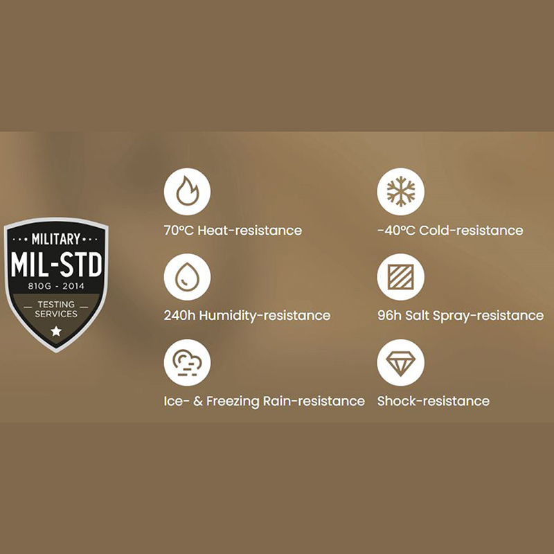 دارای مقاومت بسیار بالا در برابر ضربه، دما و رطوبت