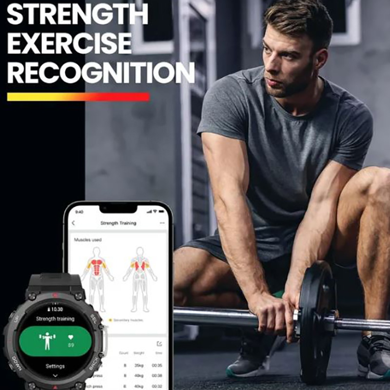 این محصول مناسب برای ورزشکاران بوده، و می تواند حرکات و ورزش های استقامتی شما را تشخیص دهد و همچنین مدت زمان استراحت بین ست ها را ذخیره می کند. و همین طور بعد از تمرینتان برنامه Zepp App نشان می دهد که چه گروه عضله ای را تمرین داده اید و چه مدت این کار را کرده اید. این محصول دارای بیش از 150 حالت ورزشی بوده که زمانی که 8 تا از این ورزش ها را انجام دهید( پیاده روی، شنا، دوچرخه سواری، تردمیل، Rowing Machine و Elliptical، پیاده روی داخل خانه و دویدن بیرون خانه) به صورت خودکار آن ها را تشخیص داده و برای شما حالت مشخص آن ها را پیشنهاد می دهد.