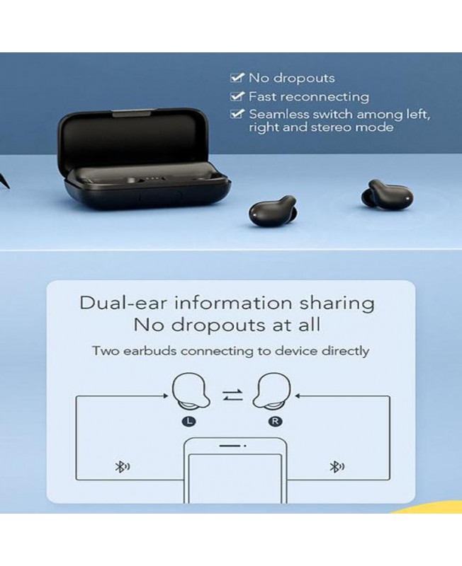 هدفون بلوتوثی T15 TWS EARBUDS هایلو شیائومی که توانایی پاوربانک شدن برای شما را با باتری 2200 میلی آمپری خود دارد و می توانید از آن در مواقع ضروری به عنوان پاوربانک استفاده نمایید.