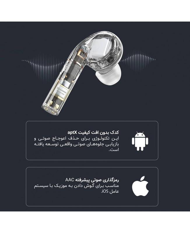 ایرفون بلوتوثی T19 برند هایلو با وزن 4 گرمی دارای چهار میکروفون برای حذف نویز و جلوگیری از تداخل صدا می باشد که می تواند تجربه مکالمه و شنیدن موسیقی به صورت بی سیم و با کیفیت خوبی را برای شما ایجاد کند. این هندزفری از فناوری بلوتوث نسخه 5.0 پشتیبانی می کند که پاسخگویی را نسبت به سری قبلی این تکنولوژی 3 برابر سریعتر و با ثبات تر ارائه می دهد و میزان تاخیر 60% کاهش یافته است که باعث می شود بتوان از آن برای گیمینگ نیز استفاده کرد.همچنین این هندزفری دارای کنترلر هایی لمسی هوشمند برای کنترل موسیقی ، تماس و میزان صدا می باشد و عملکرد آن بسیار ساده و آسان است.هایلو T19 از کیسی با باتری 600 میلی آمپرساعتی بهره می گیرد که می تواند در 2.5 ساعت شارژ شود و تا 30 ساعت انرژی مورد نیازتان را تامین و این امکان را برای شما فراهم کند تا در هر حال بتوانید ایربادزهای خود را شارژ کنید ، خود ایرباد هم می تواند در حالت مکالمه 5 ساعت پلی تایم را فراهم کند.در آخر هم باید به این نکته اشاره کرد که تی 19 با وجود چیپست aptX کوالکام و ACC به راحتی می تواند به انواع دستگاهای آندرویدی و ios متصل شود و به دلیل بهره مندی از درایور های 7.2 میلی متری و امپدانس 32 اهم صدایی با کیفیت را برای کاربران به ارمغان بیاورد.