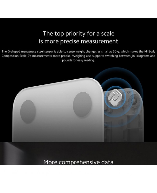 ترازوی هوشمند MI Smart Scale 2 مدل XMTZC05HM برند شیائومی با ابعاد 25*300*300 میلی متر و وزن 1600 گرم دارای طراحی با سطح شیشه ای و بدنه ای از جنس پلاستیک ABS با لبه های منحنی بوده که علاوه بر بخشیدن ظاهری ساده و شیک ، مقاومت آن را نیز تضمین کرده است و با بهره مندی از یک صفحه نمایشگر LED توانایی نشان دادن وزن کاربران را دارد که اگر پای خود بر روی آن قرار دهید به صورت خودکار روشن می شود و در زمانی که فشاری بر روی آن نیست به دلیل صرفه جویی در مصرف ، نمایشگر آن خاموش می شود. MI Body Composition Scale 2 مجهز به فناوری بلوتوث نسخه 5.0 می باشد که این امکان را فراهم می سازد تا دستگاه هایی با بلوتوث 4 به بالا به این ترازو متصل شده و با Mi Fit تمام اطلاعات را به صورت جدول در این اپلیکیشن مشاهده کنند. از ویژگی های این ترازو هوشمند شیائومی نیز باید گفت که علاوه بر توانایی اندازه گیری خردسالان (باید این گزینه را در mi fit فعال کنید) قابلیت محاسبه وزن از 100 گرم تا 150 کیلوگرم را با دقتی به اندازه 50 گرم دارد.، نحوه کار کرد این محصول هم با کمک 4 باطری 1.5V AAA است.
