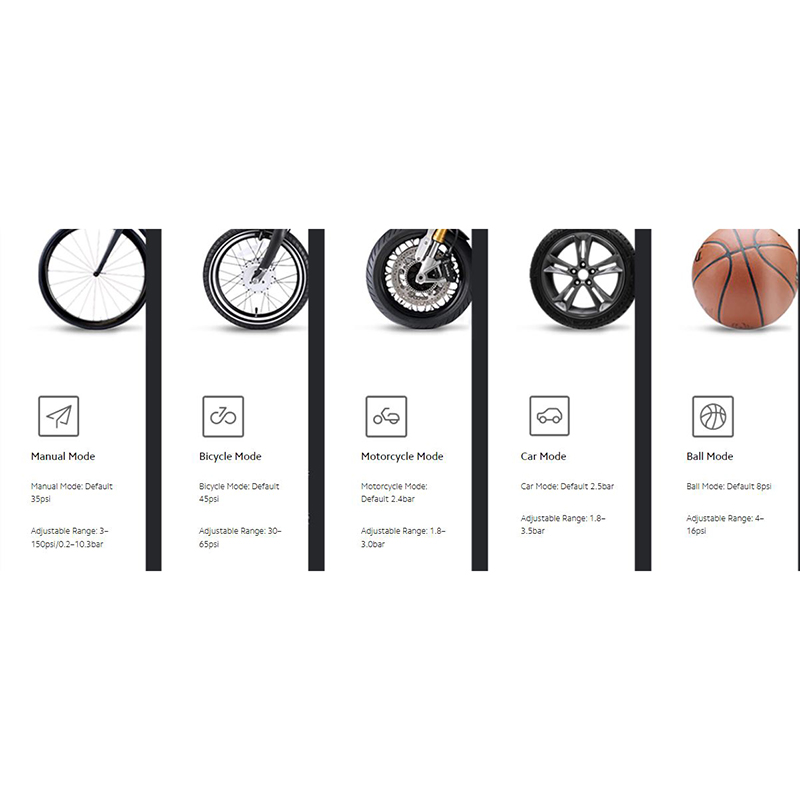 کمپرسور باد MJCQB05QJ محصول شیائومی است که دارای ابعاد 45.3*71*124 میلی متر و وزن 0.5 کیلوگرم می باشد و همین طور ظرفیت باتری آن 2Ah (14.8Wh) است که برحسب میلی آمپر ساعت که بیشتر در محصولات گفته می شود، ظرفیت این باتری 2000mAH است. این پمپ باد را می توان به سادگی دلیل ابعادش جابجا کرد و قابل حمل می باشد. شدت جریان و ولتاژ ورودی این محصول 5V/2A است که برای شارژ کردن محصول می باشد. این تلمبه بعد از شارژ شدن توانایی باد کردن لاستیک های دو ماشین یا 8 لاستیک خودرو را دارد و دارای محدوده فشار 3 تا 150psiو 0.2 تا 10.3bar می باشد، فشار این محصول را می توان قبل از باد کردن تنظیم کرد و در هنگام بادکردن زمانی که لاستیک یا توپ شما به آن فشار تنظیم شده رسید دستگاه به صورت خودکار متوقف می شود. این پمپ باد را می توان به 5 حالت تنظیم کرد که به صورت زیر می باشند. حالت تنظیم دستی: فشار پیش فرض آن 35psi می باشد و در بازه 3 تا 150psiو 0.2 تا 10.3bar قابل تنظیم است. حالت مناسب دوچرخه: فشار پیش فرض آن 45psi می باشد و در بازه 30 تا 65psi قابل تنظیم است. حالت مناسب موتورسیکلت: فشار پیش فرض آن 2.4 بار می باشد و در بازه 1.8 تا 3.0 بار قابل تنظیم است. حالت مناسب ماشین: فشار پیش فرض آن 2.5 بار می باشد و در بازه 1.8 تا 3.5 بار قابل تنظیم است. حالت مناسب توپ: فشار پیش فرض آن 8psi می باشد و در بازه 4 تا 16psi قابل تنظیم است.