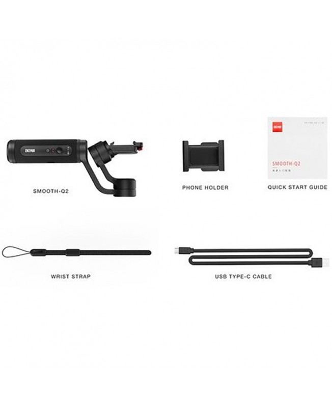 گیمبال Smooth Q2 با ابعاد 41*102*204 میلی متر و وزن 380 گرم دارای جوی استیک 4 طرفه می باشد و با طراحی تاشو خود به طور موثری لرزش را در هنگام فیلم برداری کاهش می دهد، همچنین این محصول به دلیل وزن کم این امکان را برای شما فراهم می کند تا آن را به راحتی در کوله پشتی خود حمل و در هر زمان و مکانی از آن استفاده کنید و تمامی لحظات خود را به بهترین نحوه و با کمک برنامه مخصوص این گیمبال ضبط کنید و در صورت نیاز به ویرایش و اشتراک بپردازید. بر روی گیره اسموت کیو2 یک کنترل و 2 دکمه وجود دارد که از کنترلر آن برای تغییر زاویه آن می توان استفاده کرد اما دو کلید دیگر قابلیت های متفاوتی دارند ، کلید پایینی برای روشن کردن و اتصال به بلوتوث (در صورت نگه داشتن کلید) است و از دکمه بالایی آن هم می توان برای گرفتن عکس و شروع به ضبط ویدیو استفاده کرد؛ البته به این نکته هم توجه داشته باید که بر روی کنترلر های این گیمبال چهار LED جهت نمایش وضعیت دستگاه برای کاربر وجود دارد و می توان دستگاه هایی تا وزن 260 گرم را به راحتی بر روی آن قرار داد.
